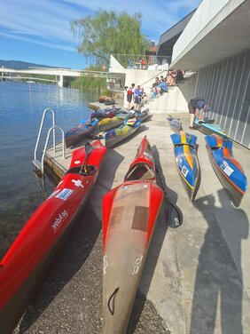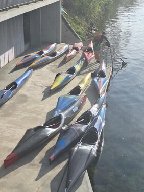 Ein neuer Rekord beim ersten Training am Montag nach den Frühlingsferien. Über dreissig Paddler und Paddlerinnen versammelten sich im Bootshaus für die Trainings. Die noch ungeübten im Abfahrtsboot nahmen am Montagskurs teil, die Erfahrenen und KLZ-ler am normalen Training und einige der Älteren machten sich nach den Infos auf den Weg ums Aareinseli (10km).