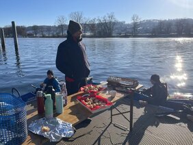 Sehr geschätzt wurde die kurze Zwischenverpflegung (heisser The und Guetzli) durch die Familie Mosimann beim Bootssteg des Kanuklubs in Grenchen.