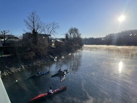 Bei Minus zehn Grad zweimal im Freien Umziehen und das Risiko von allfälligen Kenterungen auf der doch nicht ganz einfachen Strecke (Uttigerschnelle, etc.) war nicht verantwortbar. Als Ersatzstrecke wurde die Fahrt von Büren bis nach Solothurn ins Bootshaus bestimmt.